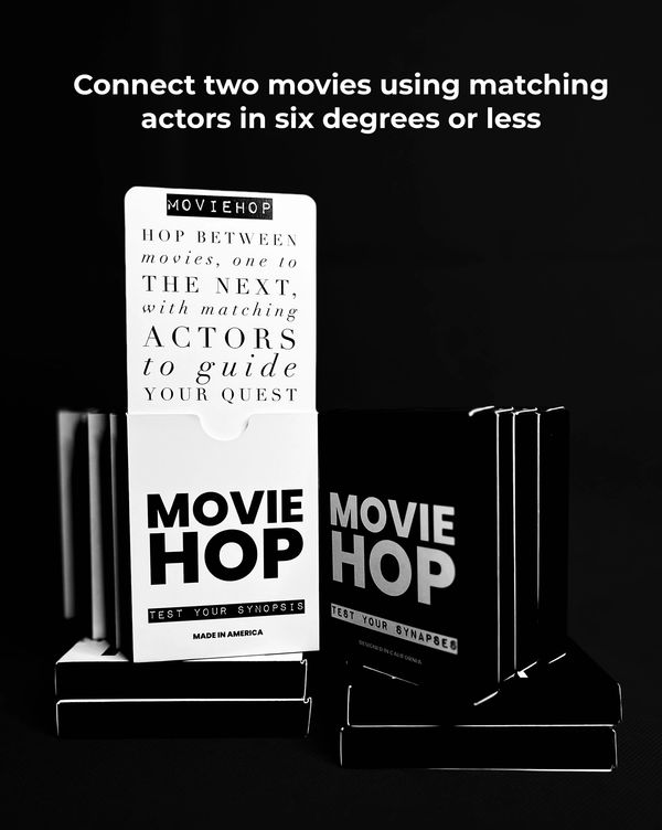 Movie Hop is a classic game of Six Degrees of Separation - to spice up your movie nights, game nights, road trips and lines at the theme park.